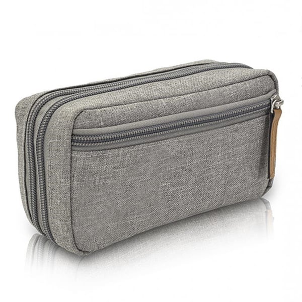 Étui élégant avec différents compartiments et bandes élastiques pour transporter le kit diabétique de manière organisée