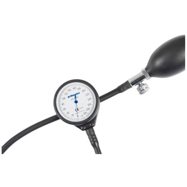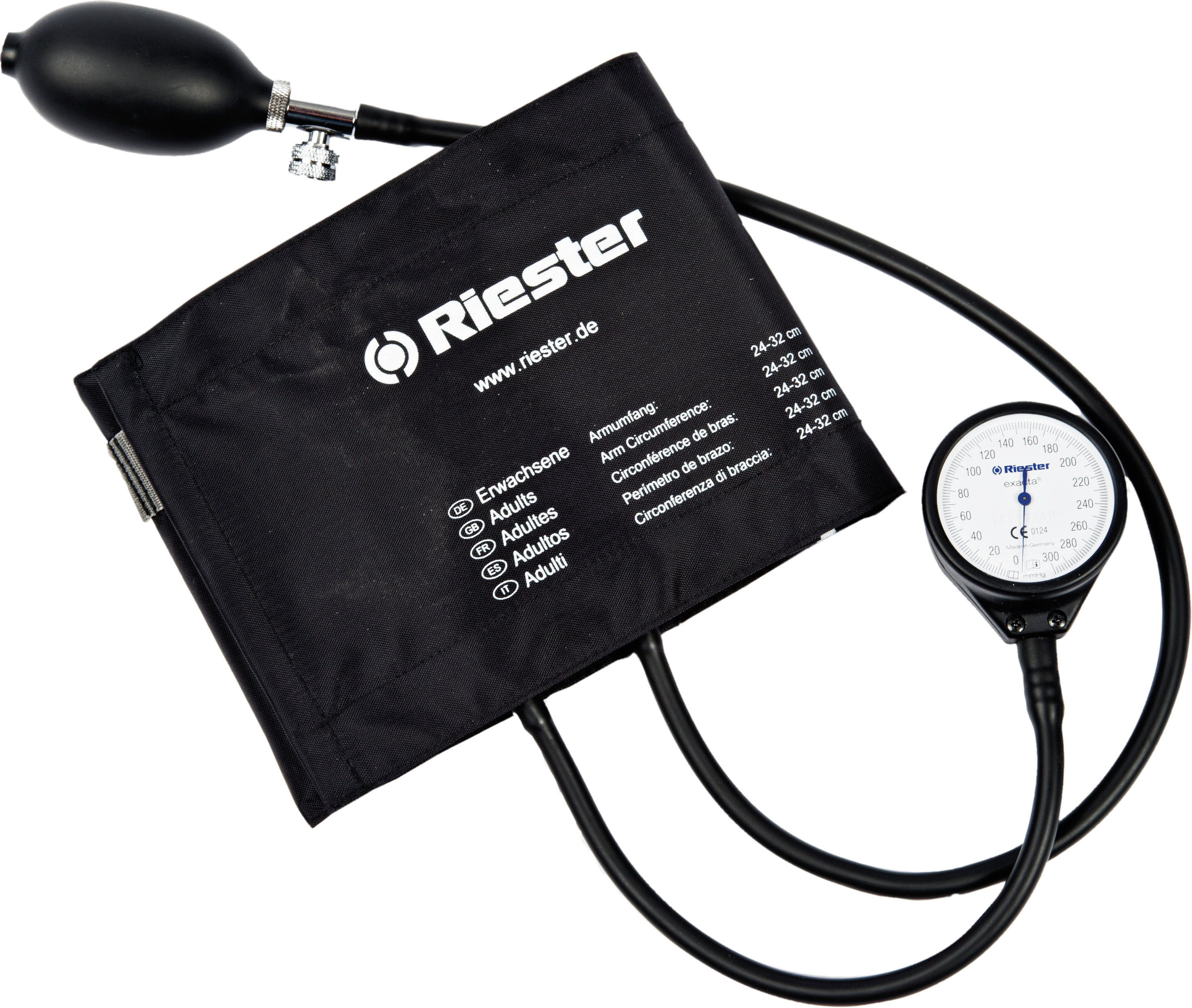 Sphygmomanomètre anéroïde Riester Exact : avec bulbe et manomètre séparés.