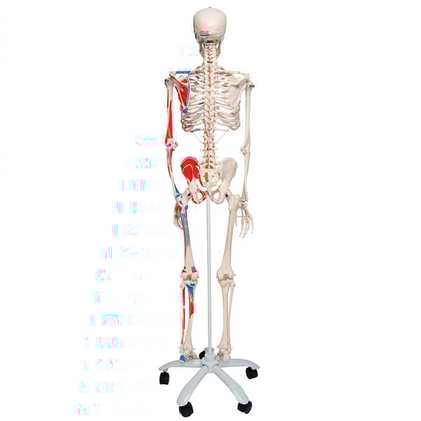 Squelette anatomique Max : avec muscles sur support à cinq pieds avec roues