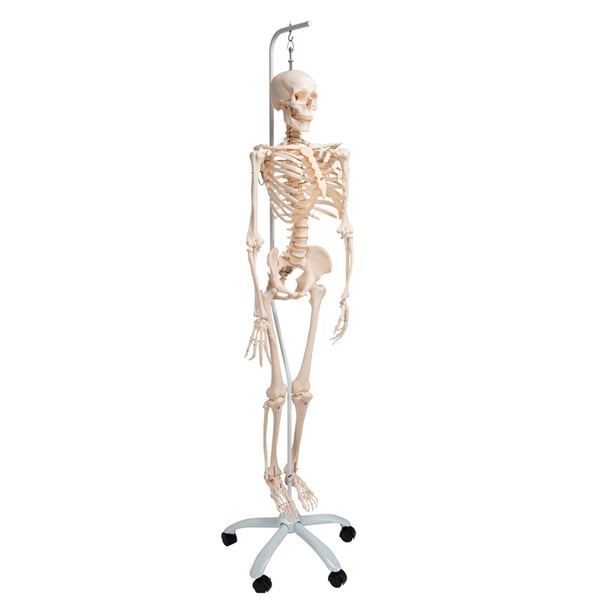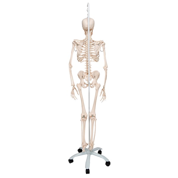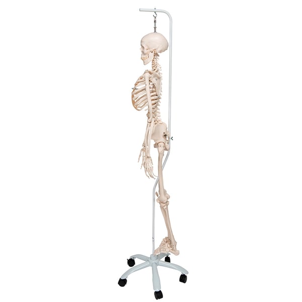 Les os de la main de ce modèle squelette ont été montés sur des fils pour permettre de les voir dans leur position naturelle. Le montage flexible des os du pied ne sert qu'à votre mobilité. Les omoplates tournent lorsque les bras sont levés . Même une faible mobilité du sacrum et du bassin peut être démontrée avec ce modèle.