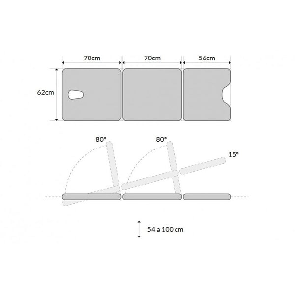 Il s'agit d'une civière électrique en trois sections sans trou facial . Quant à sa structure, elle est conçue en ciseaux, réalisée en tube d'acier et peinte avec de la peinture époxy solide et très résistante cuite à haute température.