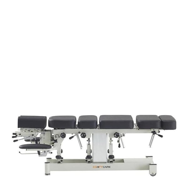 - 4 drops réglables avec pédale (cervicale, thoracique, lombaire et pelvienne) pour techniques de distraction et de manipulation