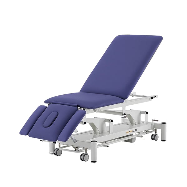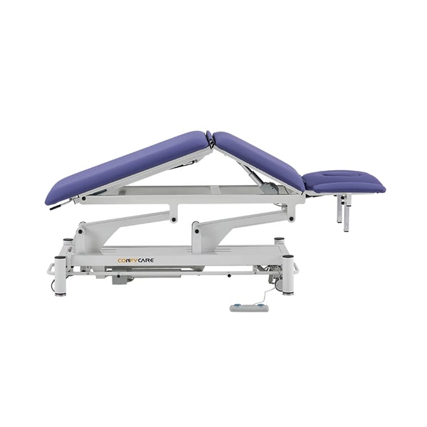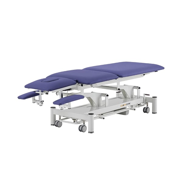 Table électrique Galley Coinfycare : sept sections, triple moteur, revêtement en PU et accoudoirs rabattables pour l'esthétique et la physiothérapie professionnelles