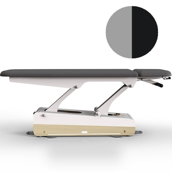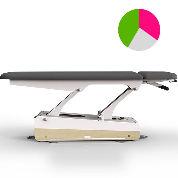 Table de kinésithérapie électrique Swop 2 Pro Physio : deux corps, tête de lit courte, entièrement personnalisable, revêtement sans couture, un modèle qui change les règles du jeu