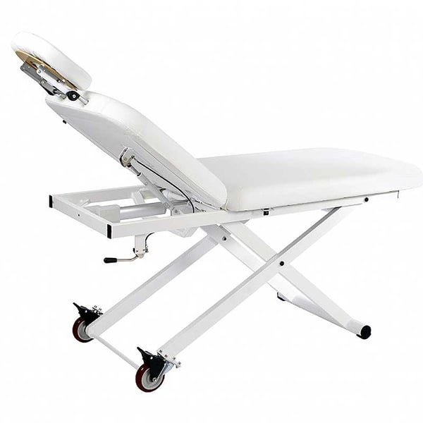 De plus, le brancard électrique Latis comprend 2 roues qui facilitent son déplacement et son revêtement en PU blanc est de haute qualité et facile à nettoyer.