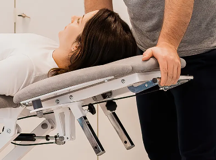 - Le levier pratique d'inclinaison de l'appui-tête permet d'atteindre différentes inclinaisons jusqu'à +70º et -20º, afin de trouver la position idéale pour effectuer différentes manipulations cervicales.