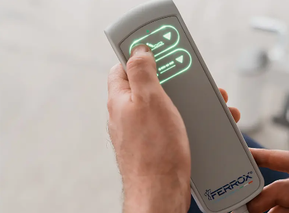 - Télécommande avec verrouillage de sécurité pour le réglage en hauteur (sauf pour les versions avec barre périmétrique actionnée au pied).