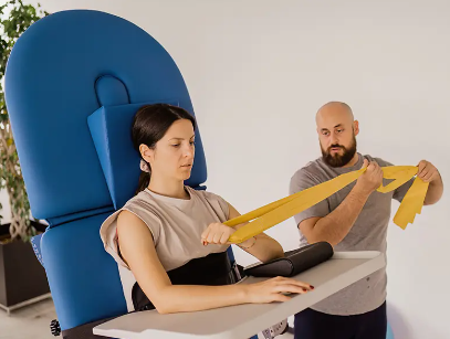 - Plateau repose-bras disponible, utile pour les activités quotidiennes et également pour les exercices des membres supérieurs.