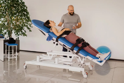 Table verticale bariatrique MICHELANGELO : réglage de la hauteur et de l’inclinaison par deux moteurs électriques