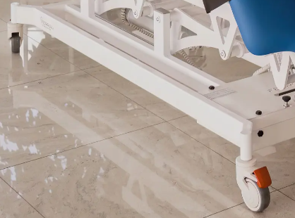 - Quatre roues pivotantes, toutes équipées de freins, permettent de déplacer facilement le brancard.