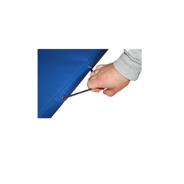 La fermeture de celui-ci est réalisée au moyen d'une fermeture à glissière de sécurité protégée par un double rabat sur une longueur et une largeur du tapis lui-même. Il comprend des renforts dans les coins, des œillets métalliques pour la sortie d'air et des poignées amovibles pour une portabilité facile. L'utilisation du tapis peut se faire des deux côtés.