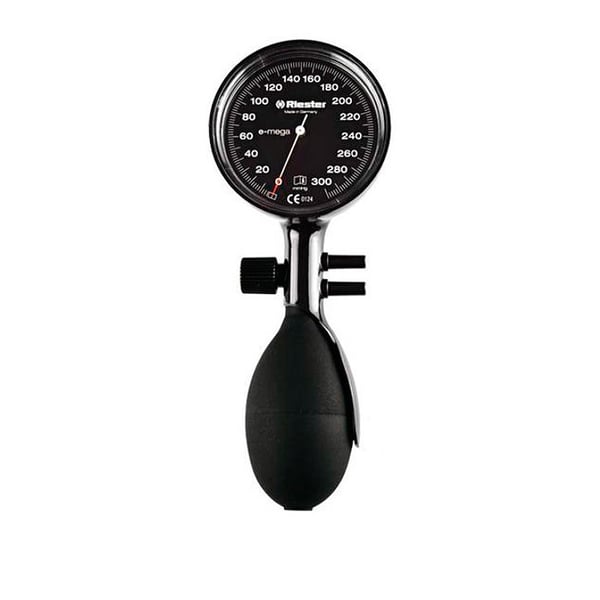 Tensiomètres anéroïdes Riester Set I, e-mega, avec 3 brassards désinfectables 1 tube, boîte (2 couleurs disponibles)
