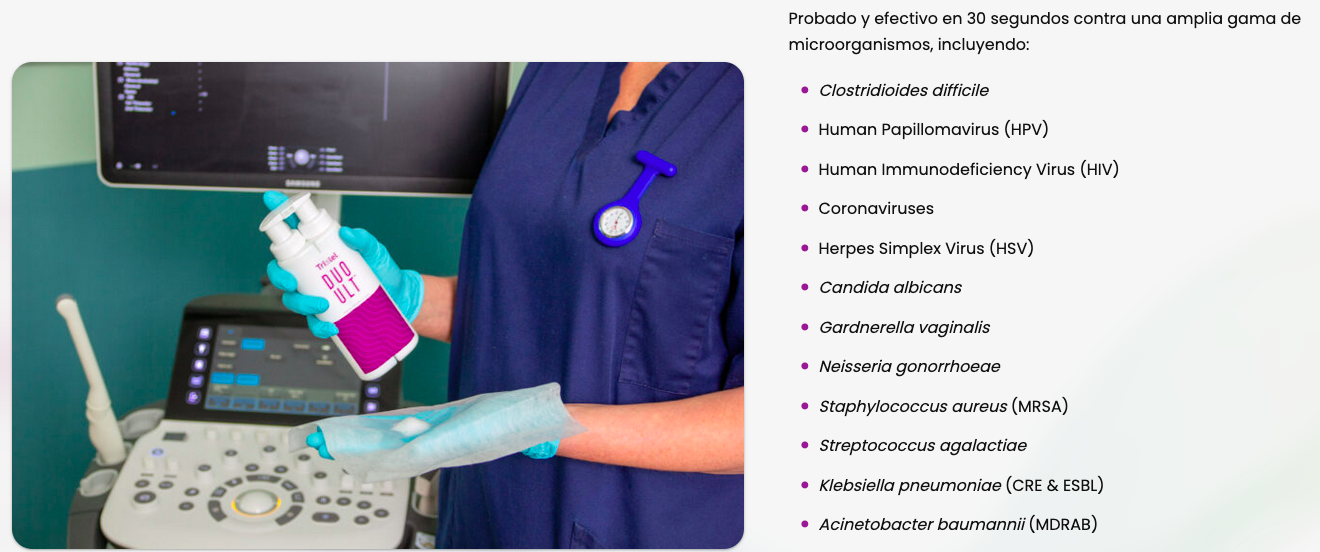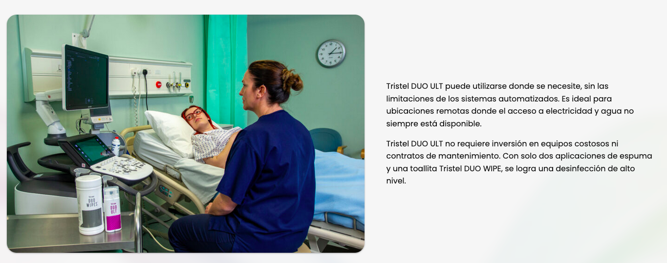 Tristel DUO ULT : Désinfectant de haut niveau premium pour sondes d’échographie et instruments endocavitaires. Efficacité maximale contre le VPH lors d’interventions critiques en 30 secondes.