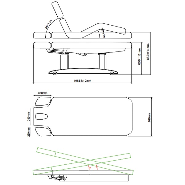 Trois sections Troch SPA, esthétique et table de massage: Électrique avec quatre moteurs qui régulent la hauteur et l'inclinaison du dossier.