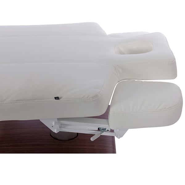 Il possède des accoudoirs réglables et une tête de lit avec un trou pour le visage, sa structure est métallique avec une finition en bois naturel ou foncé et son rembourrage ultra-doux d'un grand confort avec rembourrage en PU blanc est de haute qualité.