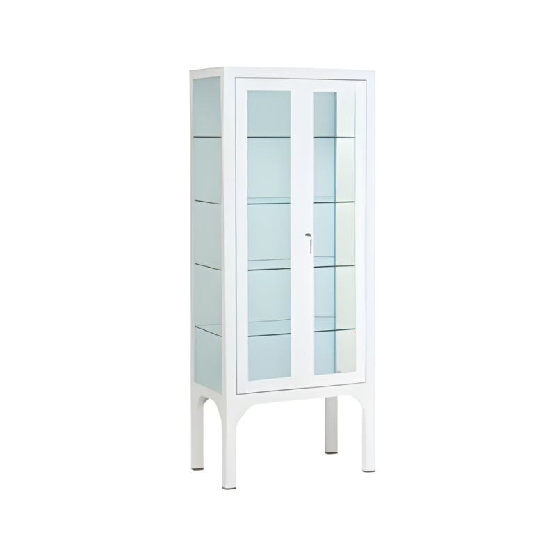 L'armoire de présentation clinique à 2 portes en acier émaillé est une armoire conçue pour le rangement sûr et organisé des instruments médicaux et du matériel clinique.